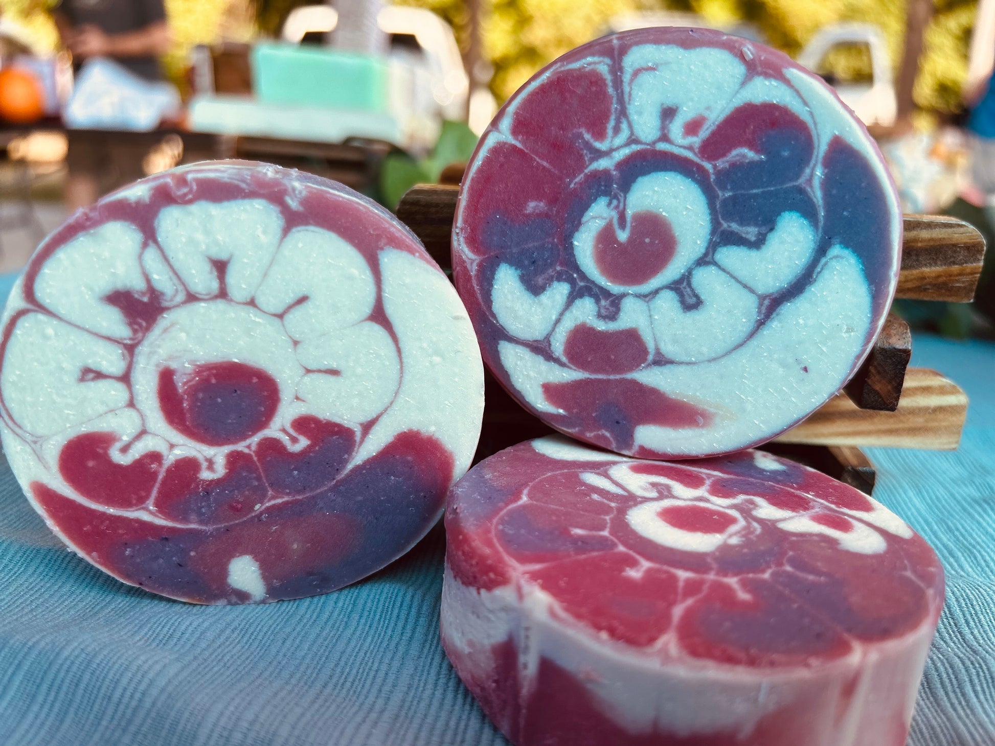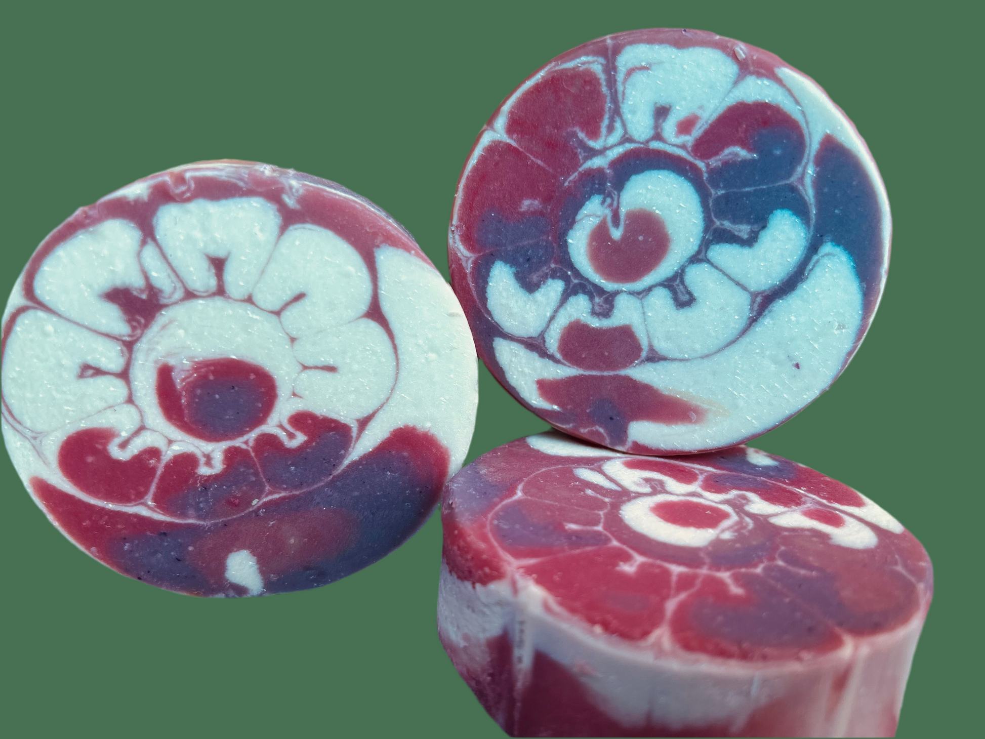 Ingredients: Olive Oil, Water, Coconut Oil, Shea Butter, Lye, Hemp Seed Oil, Palm Oil, Castor Oil, Fragrance, Kaolin Clay, Colorant (Micas, Titanium Dioxide), Citric Acid.